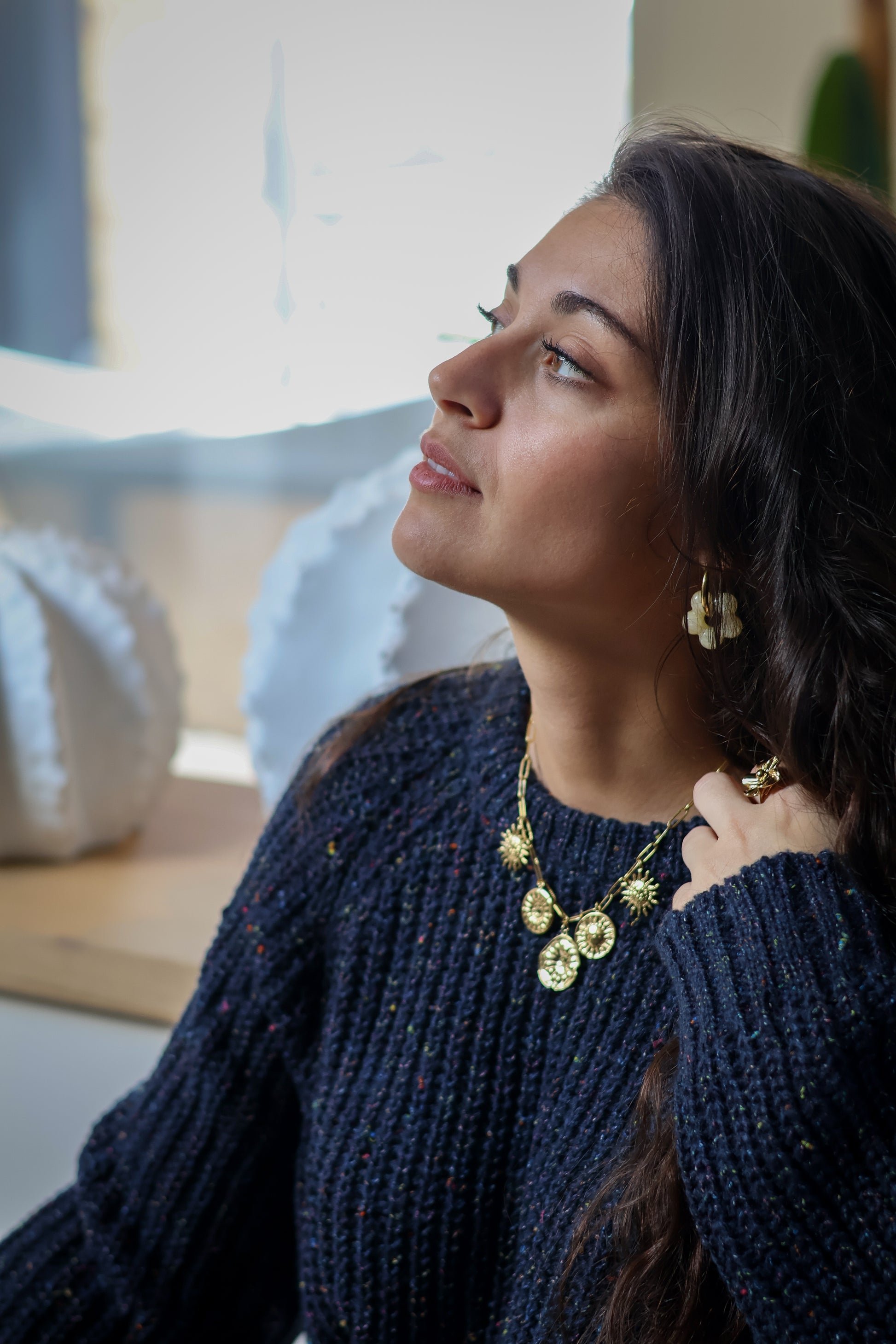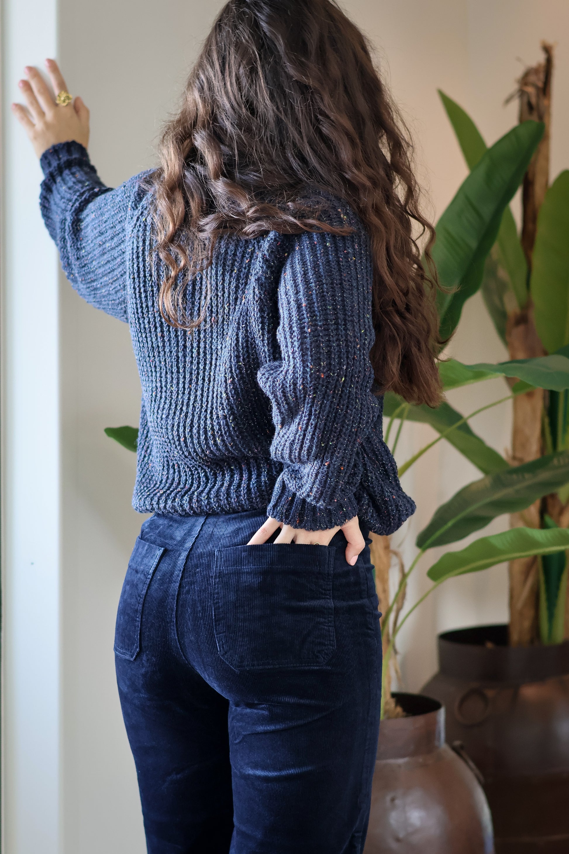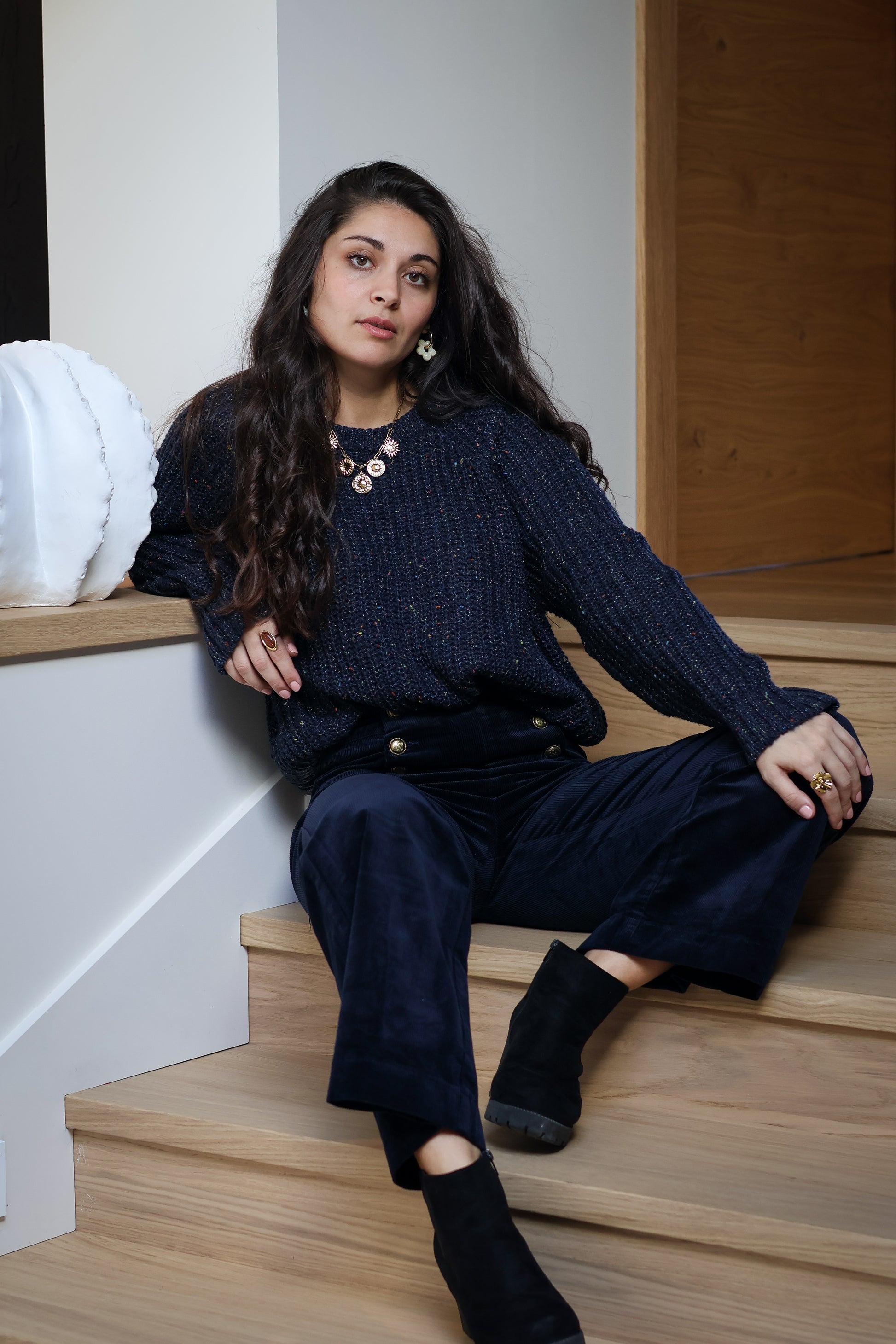 Le pull CAMILLE marine est proposé en taille unique
