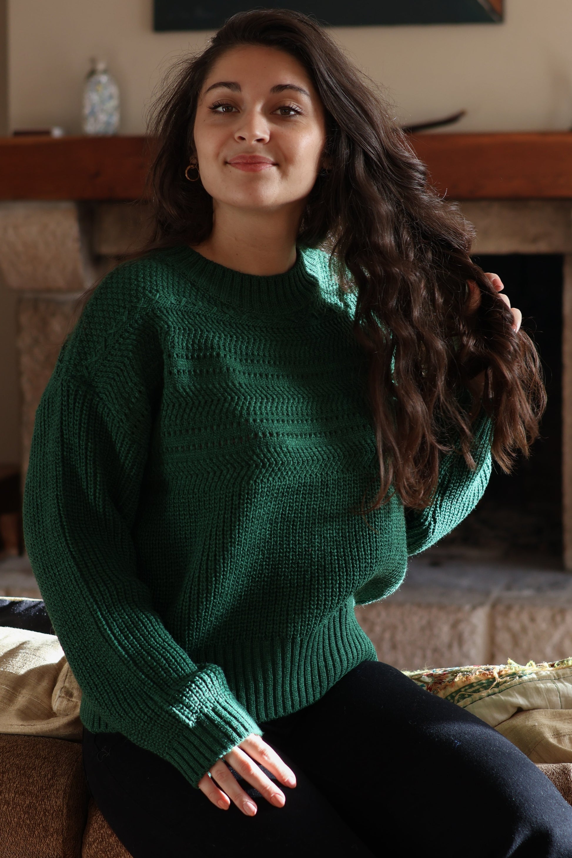 Le pull SAMMY vert est proposé en taille unique